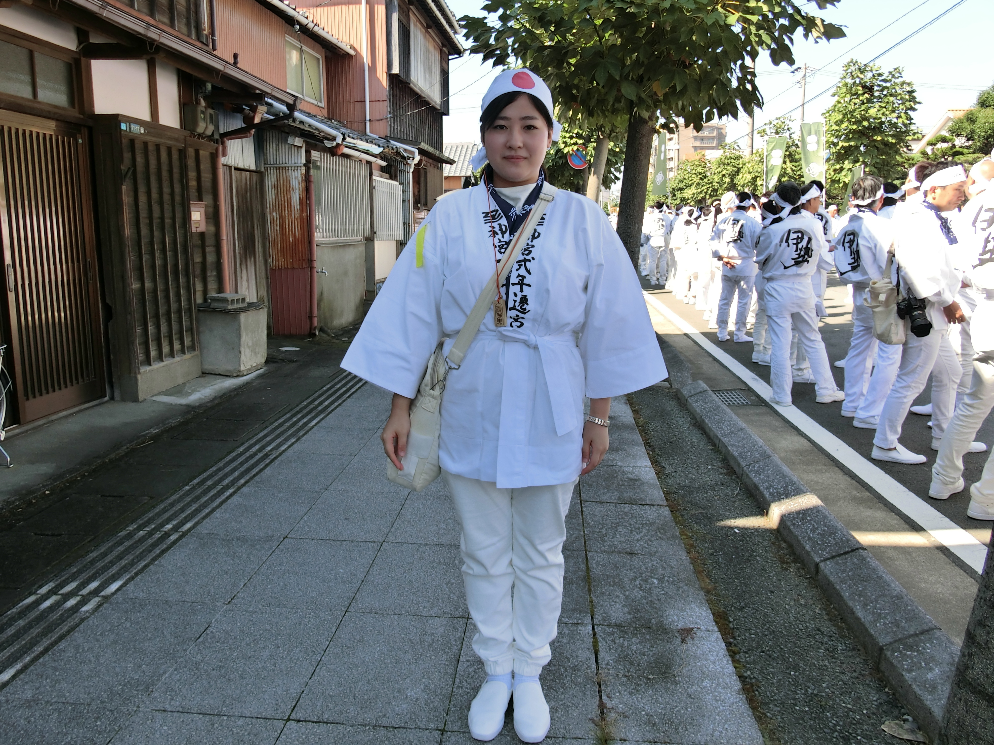 秋晴れの当日。そろいの法被・鉢巻姿で初穂曳へ